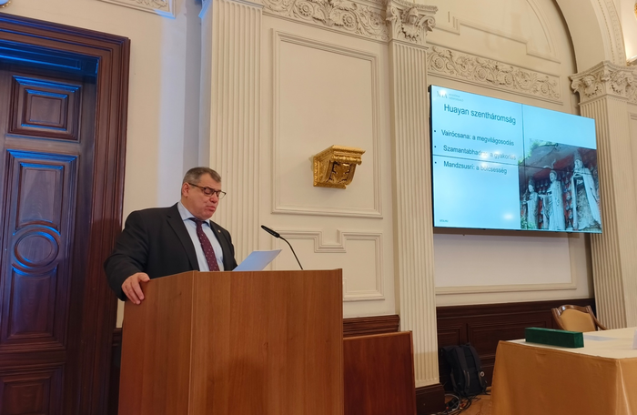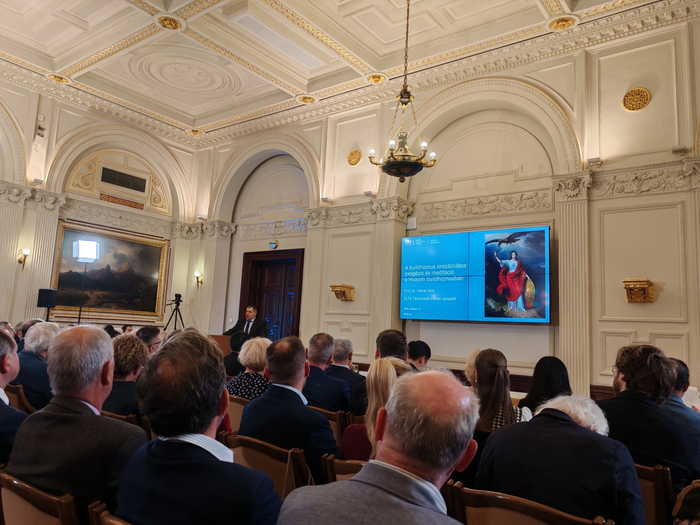 当地时间10月13日,匈牙利科学院院士、罗兰大学亚洲事务专员、孔子学院匈方院长郝清新(Dr. Hamar Imre)教授在匈牙利科学院总部举办了题为《佛教的中国化:华严宗中的诠释与禅观》的学术讲座,约120名中匈各界代表受邀出席了本次活动。