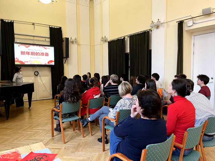 当地时间2月10日,罗兰大学孔子学院莫大奇中学教学点(Madách Imre Secondary School)举办了一场精彩纷呈的春节文化活动。本次活动以中国春节为主题,通过春节知识讲座、中国文化体验、汉语角等多种形式,让师生们亲身感受到了中国文化的魅力。活动现场气氛热烈,笑声不断,吸引了约60名师生参与其中,该校校长也来到现场体验。