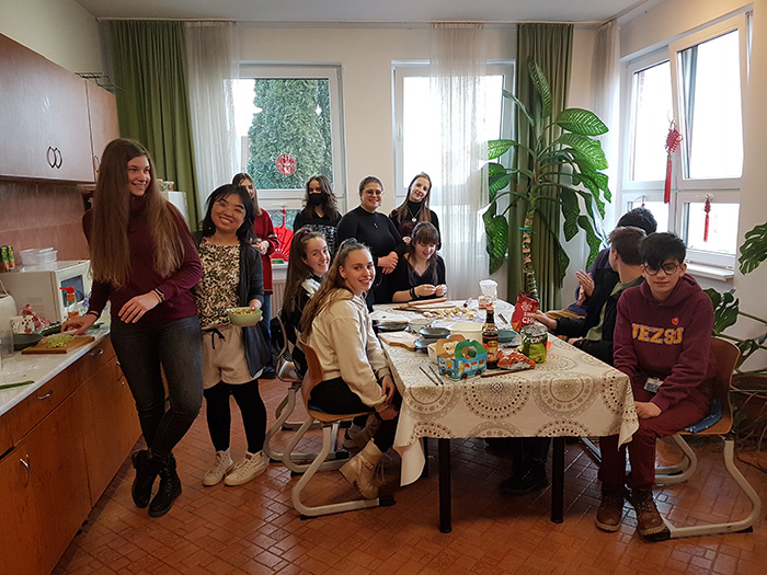 当地时间2月1日,匈牙利罗兰大学孔子学院米什科尔茨教学点耶稣会中学的学生们在汉语教师王凡帆的组织下,欢天喜地庆祝中国农历新年。