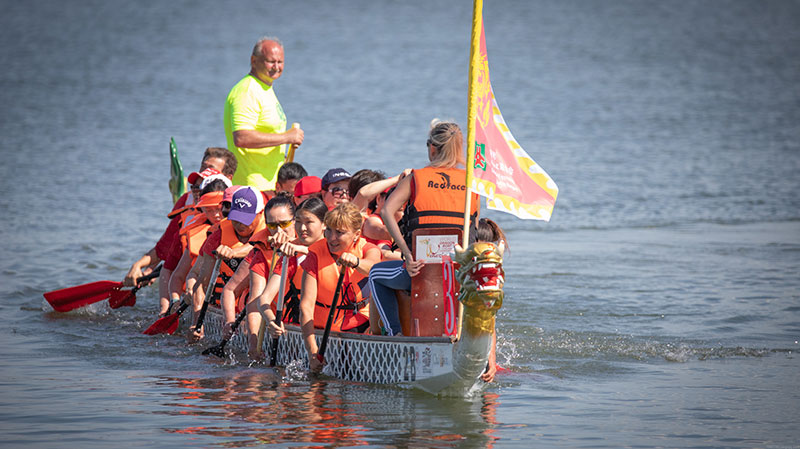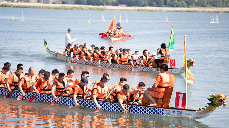 在当天的活动现场,韦伦采湖畔的各个角落都被各种有趣的文化活动装点得熠熠生辉。湖面上是蓄势待发的由不同机构组成的龙舟队。