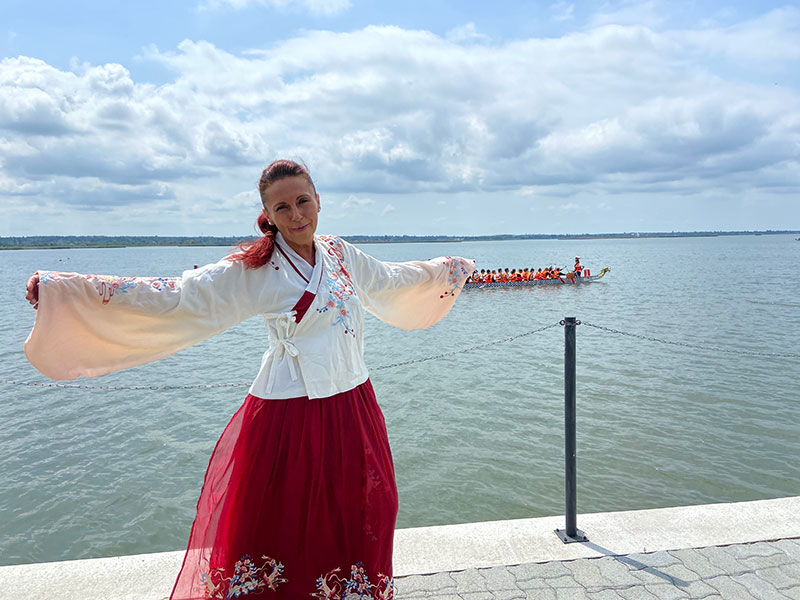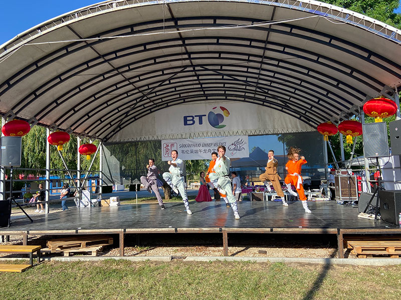 2022年6月4日在匈牙利境内美丽的韦伦采(Velence)湖湖畔举办了韦伦采首届端午龙舟大型文化节。韦伦采湖是匈牙利境内第三大湖泊,湖畔风景秀丽宜人。本次活动由匈牙利韦伦采市长格哈德·阿科斯(Gerhard Ákos)和中华文化爱好者卡普拉·巴拉兹(Káplár Balász)发起,由匈中文化交流协会、匈牙利华人华侨妇女联合会、欧亚中心等协办,得到了匈牙利部分华人商会、唐人街集团等团体的积极参与,罗兰孔院受邀参与了此次活动。