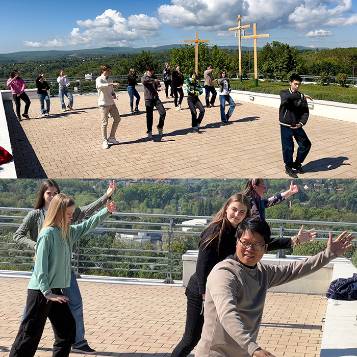 当地时间4月26日,罗兰大学孔子学院米什科尔茨芬尼·久拉耶稣会中学(Fényi Gyula Jezsuita Gimnázium)教学点举办了一年一度的“中国文化日”活动。