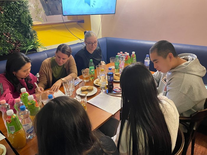 交流会以一场别开生面的中匈知识问答竞赛拉开帷幕。学生们自由组合成8个小组,围绕中匈两国的历史、地理、音乐、语言文化等多个领域的知识展开答题比拼。各小组拿到题目后认真思考、积极讨论,共同协作完成答题。在此过程中,学生们不仅加深了对两国文化的认识与了解,更拉近了彼此之间的距离。经过数轮激烈角逐,孔院根据各小组最终得分排名,为学生们颁发了纪念品,以鼓励大家对两国文化知识的探索热情。