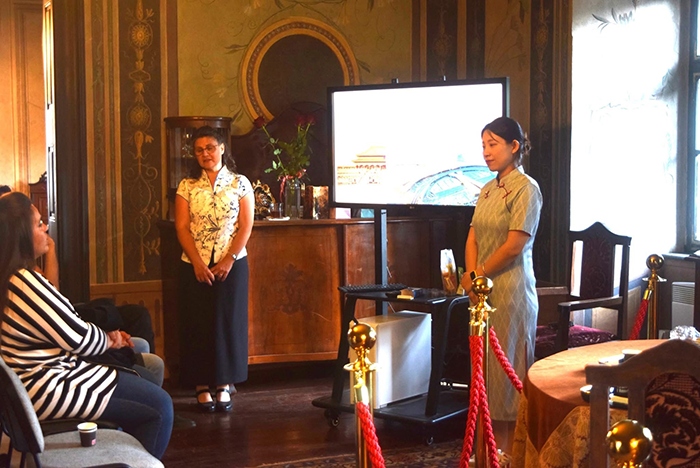 A látogatók elsőként Chen Xing tanárnő „Peking varázsa – élő örökség a múlt és a jelen harmóniájában” című előadását hallgathatták meg, aki az ősi és egyben modern város fejlődését és változásait mutatta be az érdeklődőknek, arra fókuszálva, hogy a modern élet vívmányai és az ősi történelmi emlékek hogyan tudnak egymás mellett harmonikusan megjelenni a kínai fővárosban.